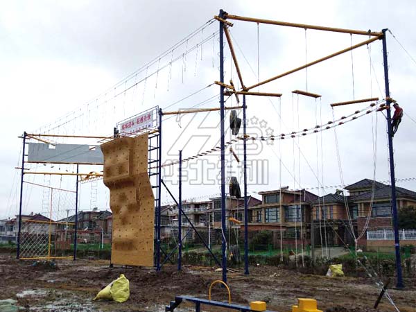 規(guī)格:占地17米×17米,由15個1米×1米×4米高的站臺組成。平臺高2米。起點和終點設(shè)有樓梯。   包含項目:獨木橋、勇往直前、圓木橋、圓木秋千、等…